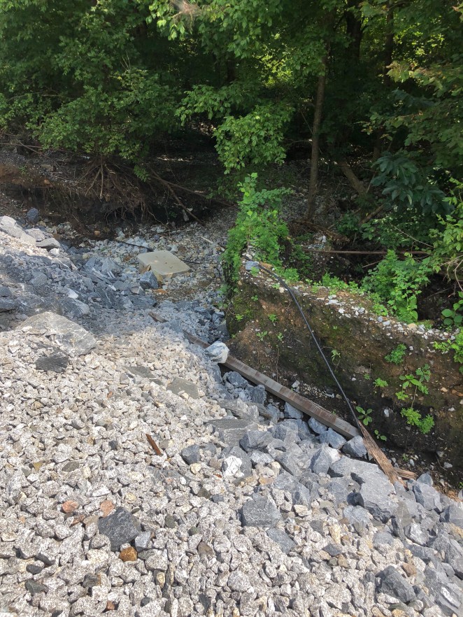 The washout, as the photo that leads off this post shows, is scary. One can only imagine the force of water that could rip a culvert apart that had presumably stood for somewhere north of 150 years. The roiling water went so far as to carve additional chunks out of the Towpath further up