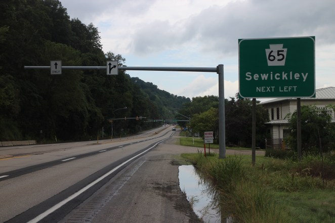 While I was at the restaurant a friend on Facebook commented that the stretch of Pennsylvania State Highway 51 ahead of me to where it crossed the river at Beaver was really a challenging and dangerous road for cyclists, and I should avoid it by crossing back over the river not too much further up and taking State Highway 65 instead. I followed this advice by crossing the Ohio on the Sewickley Bridge.