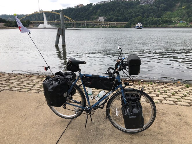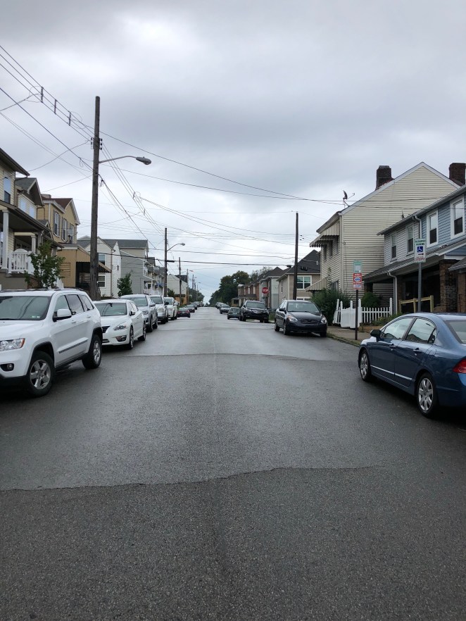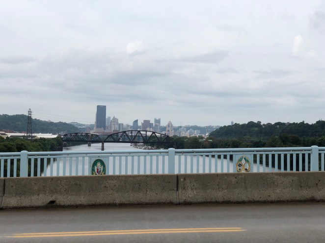 My host’s house was located in a neighborhood about five miles/eight km east of the central city up quite a large hill. For that matter though, unless you are right on one of the three rivers, everything in Pittsburgh is up quite a large hill. Having climbed the hill yesterday to get there I had the pleasure of coasting back down this morning.