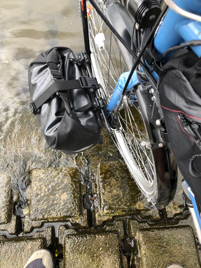 “Bikes ah free,” the tollgate guy said with a smile and a wave. Yes, I though, but does that include coming to fish me out when this whole contraption falls into the river?