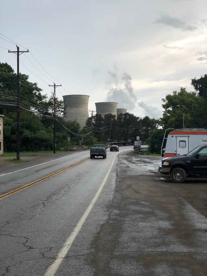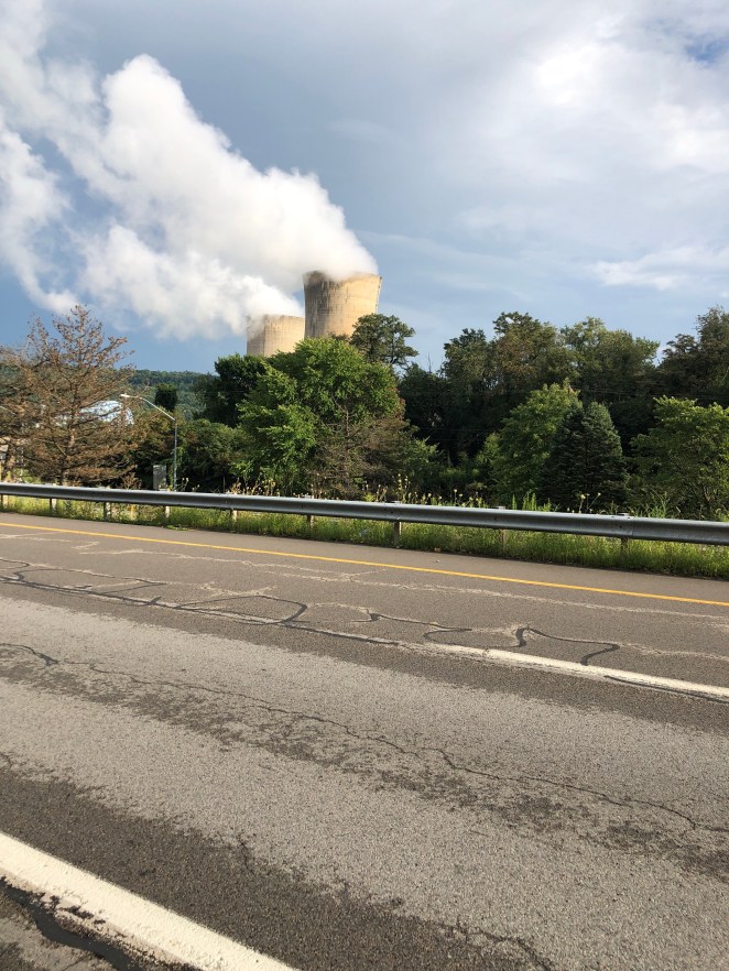 It was getting to be late afternoon when the gigantic cooling towers, five in all, of the Shippingport, Pennsylvania nuclear power complex loomed ahead.
