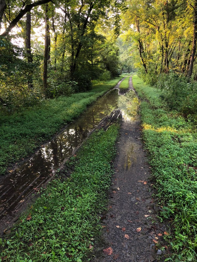 The Towpath after the trail forks off becomes narrow and wild-looking.