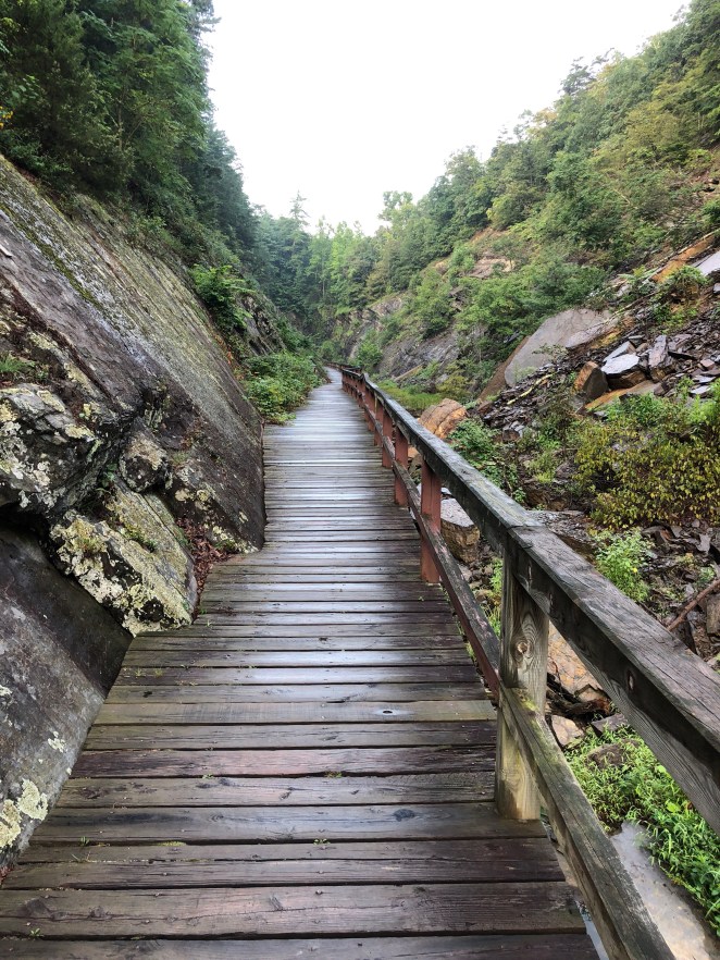 It enters the rock-bound upper reaches of Tunnel Hollow and becomes a boardwalk.